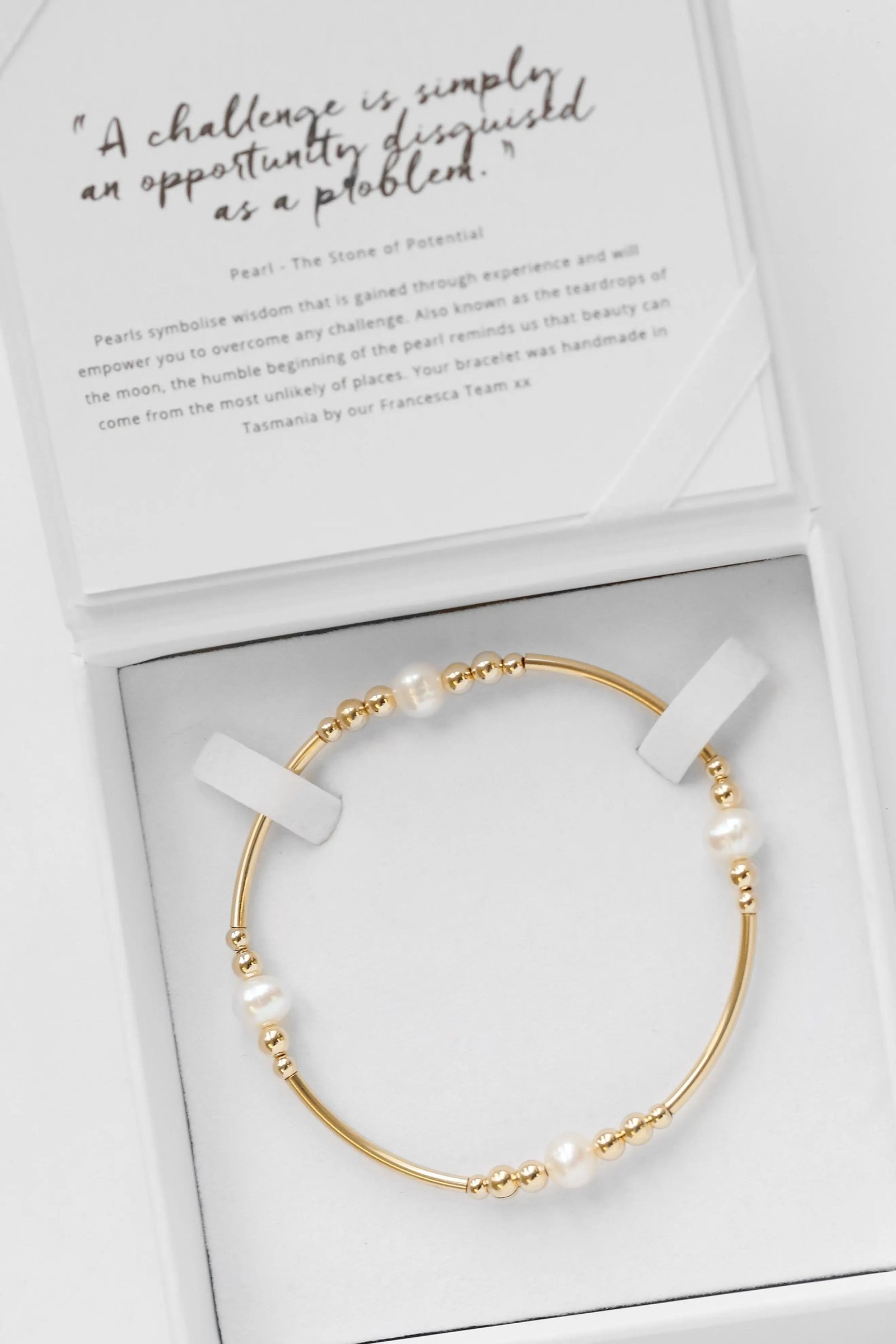 These bracelets are designed with natural freshwater pearls all with their own uniqueness. Pearls are an elegant and timeless piece, perfect for everyday wear and they go with everything!