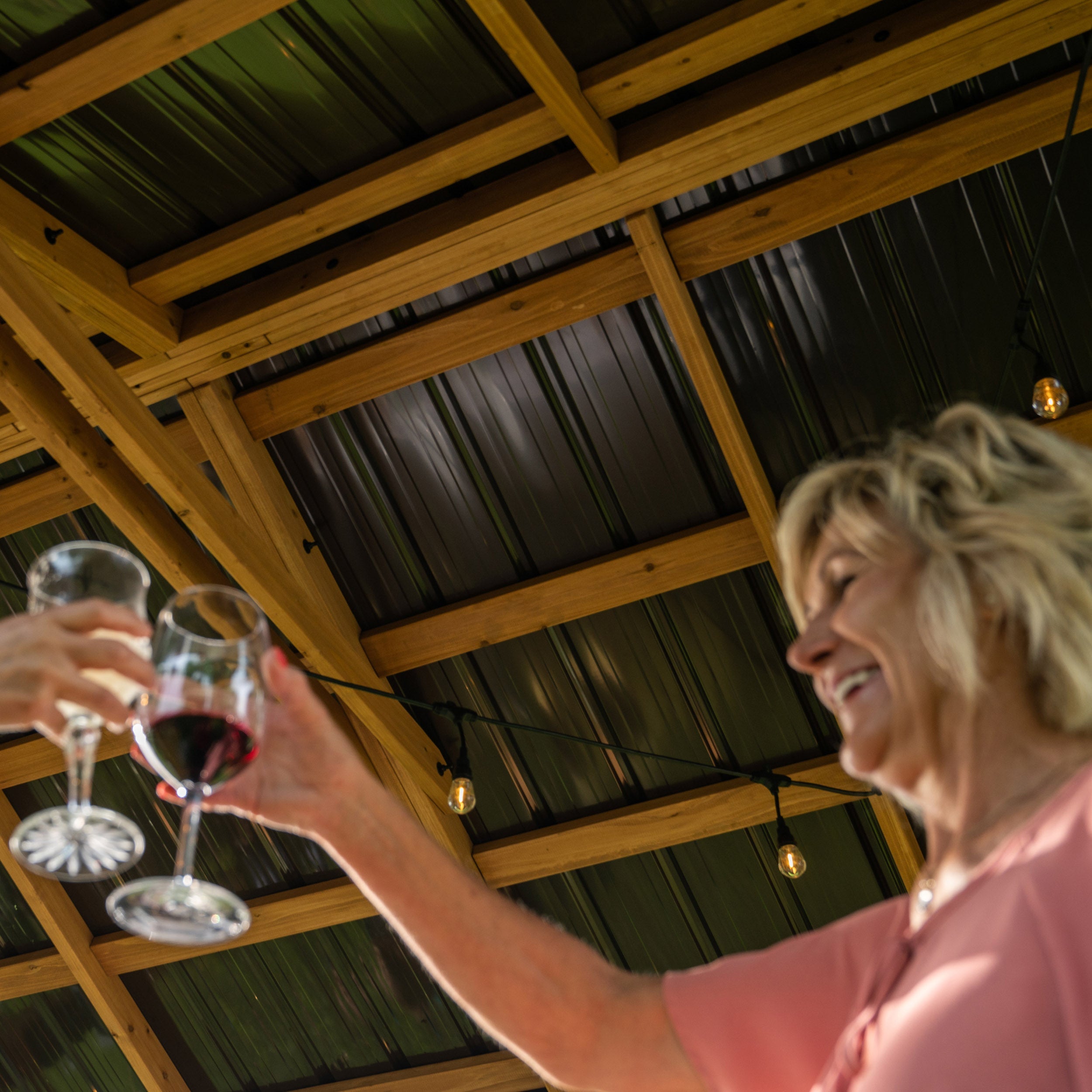 A sturdy cedar frame and strong steel roof provide long-lasting durability and the contemporary design will enhance the value and aesthetics of your space.