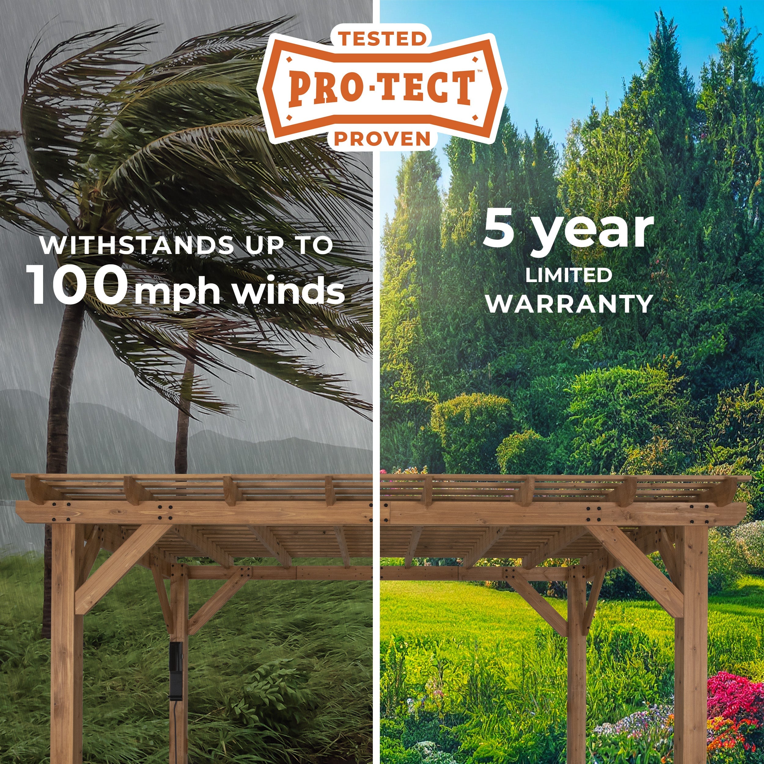 It provides ample flexibility for any outdoor setting with a wide canopy and a greater number of purlins for more shade. Plus, our exclusive PowerPort™ lets you transform it into the ultimate hub for cozy outdoor gatherings. And to top it off, it’s PRO-TECT™ Tested and Proven to withstand winds up to 100 mph*.