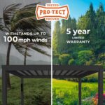 Our Trenton steel pergola is a striking combination of all-weather resilience, contemporary style, and unrivaled functionality. Coated in stylish black, the galvanized-steel structure is impervious to rust, UV damage, chipping, and scratching, and is PRO-TECT™ Tested and Proven to withstand winds up to 100 mph*.