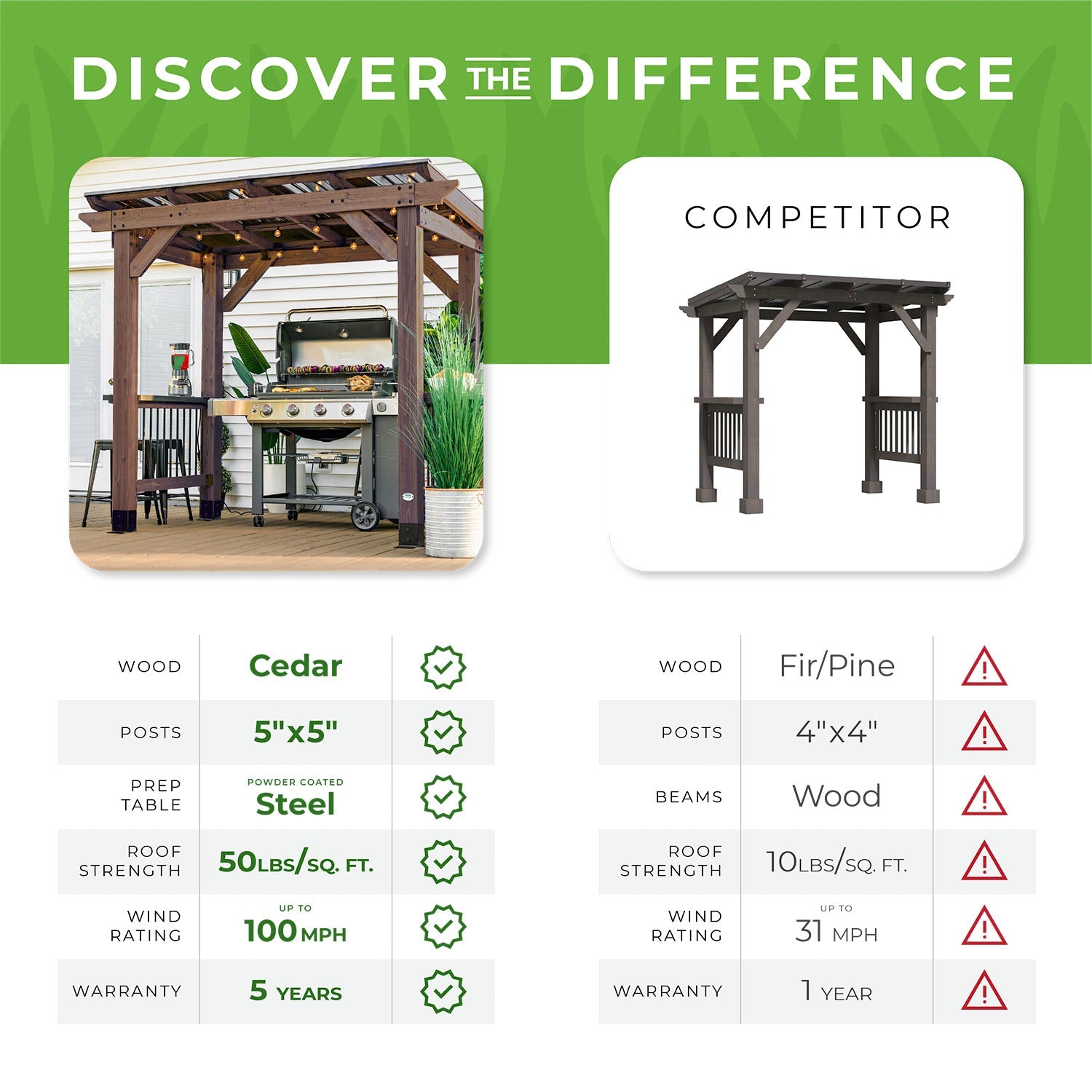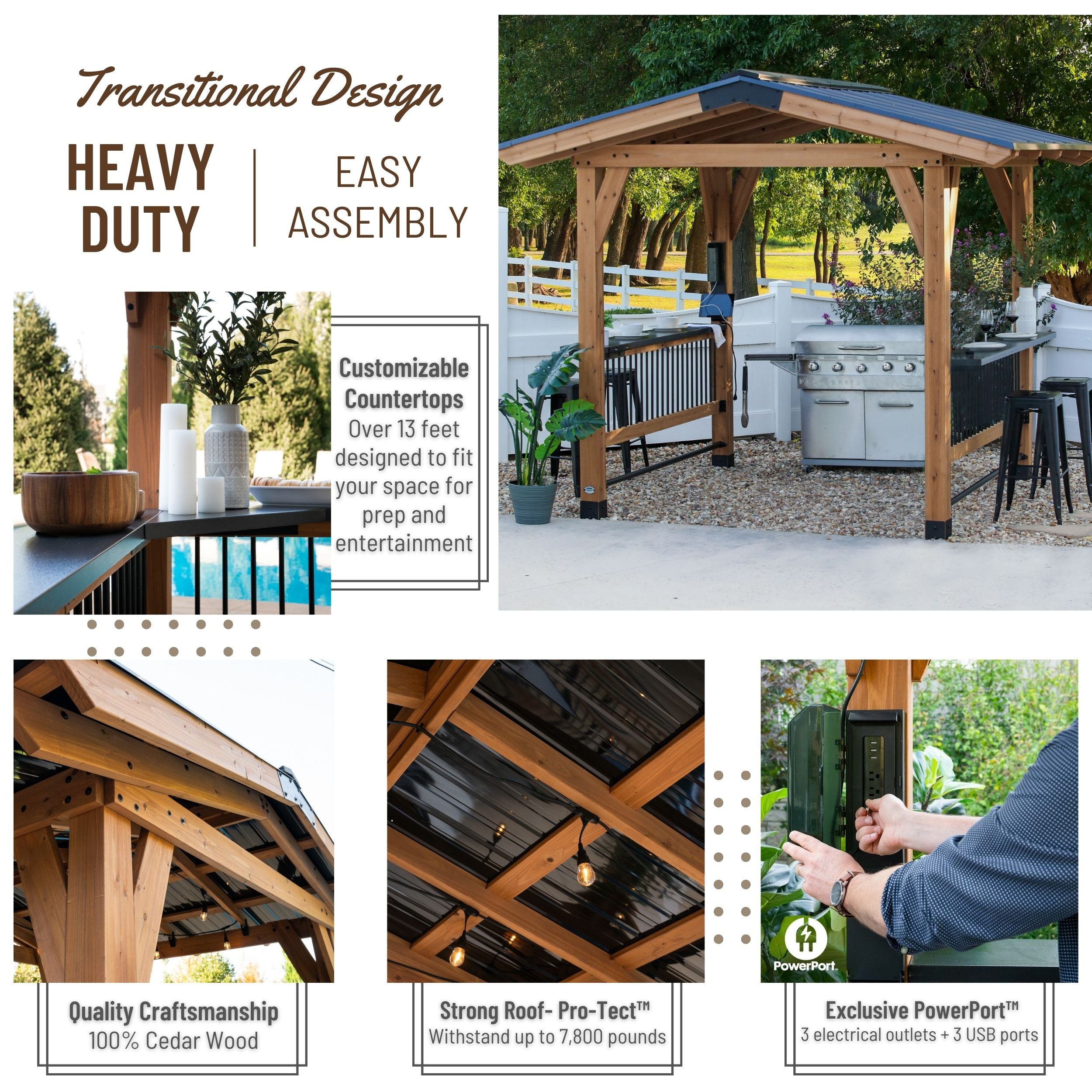 Our gazebos are crafted from high-quality wood, metal, and weather-resistant materials to ensure durability and longevity.