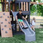 the kiddos can conquer the rock wall or ascend the easy entry ladder