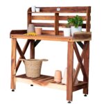You can transition from a potting bench to a serving bar in a snap. The generous tabletop accommodates any project, while the slatted shelf beneath ensures perfect airflow and drainage for your gardening supplies or party essentials. Whether you’re nurturing plants or hosting, this savvy table is a must!