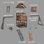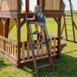 The standout feature is the crow’s nest with a telescope that always sparks adventures. But not to be outdone, just below is a set of monkey bars, a rock wall, a wave slide, a snack stand, a picnic table, swings, and more. With so many features, it rises above what you’d expect from a swing set — that’s why we named it Skyfort!