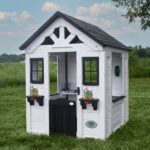 A cheery half-door is perfect for mini greeters, thirsts can be quenched through the side snack window, and the front boasts adorable flower pot holders (blossoms sold separately). Inside, the fun sizzles with a play sink, stove, and cordless phone.
