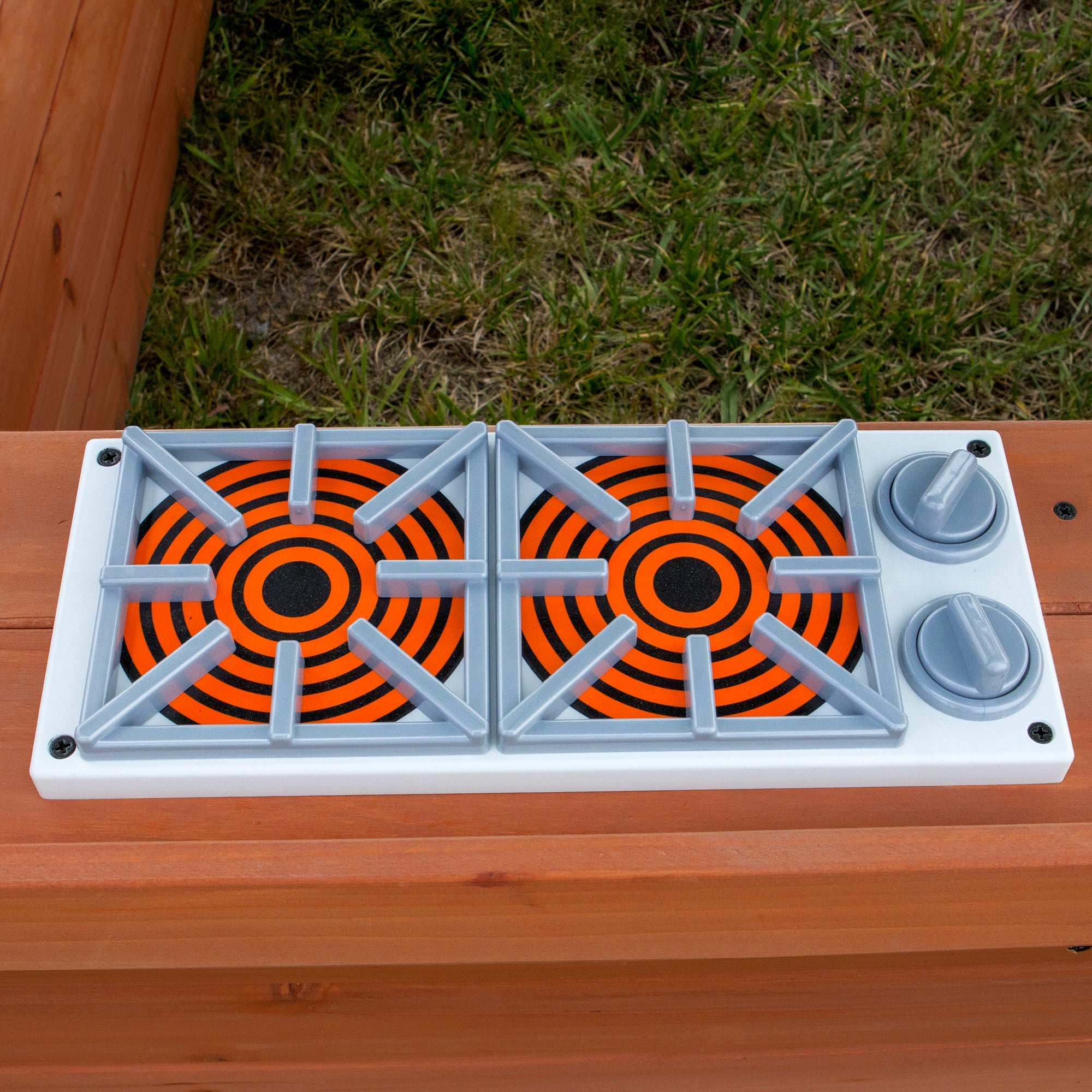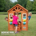 A cheery half-door is perfect for mini greeters, thirsts can be quenched through the side snack window, and the front boasts adorable flower pot holders (blossoms sold separately). Inside, the fun sizzles with a play sink, stove, and cordless phone.